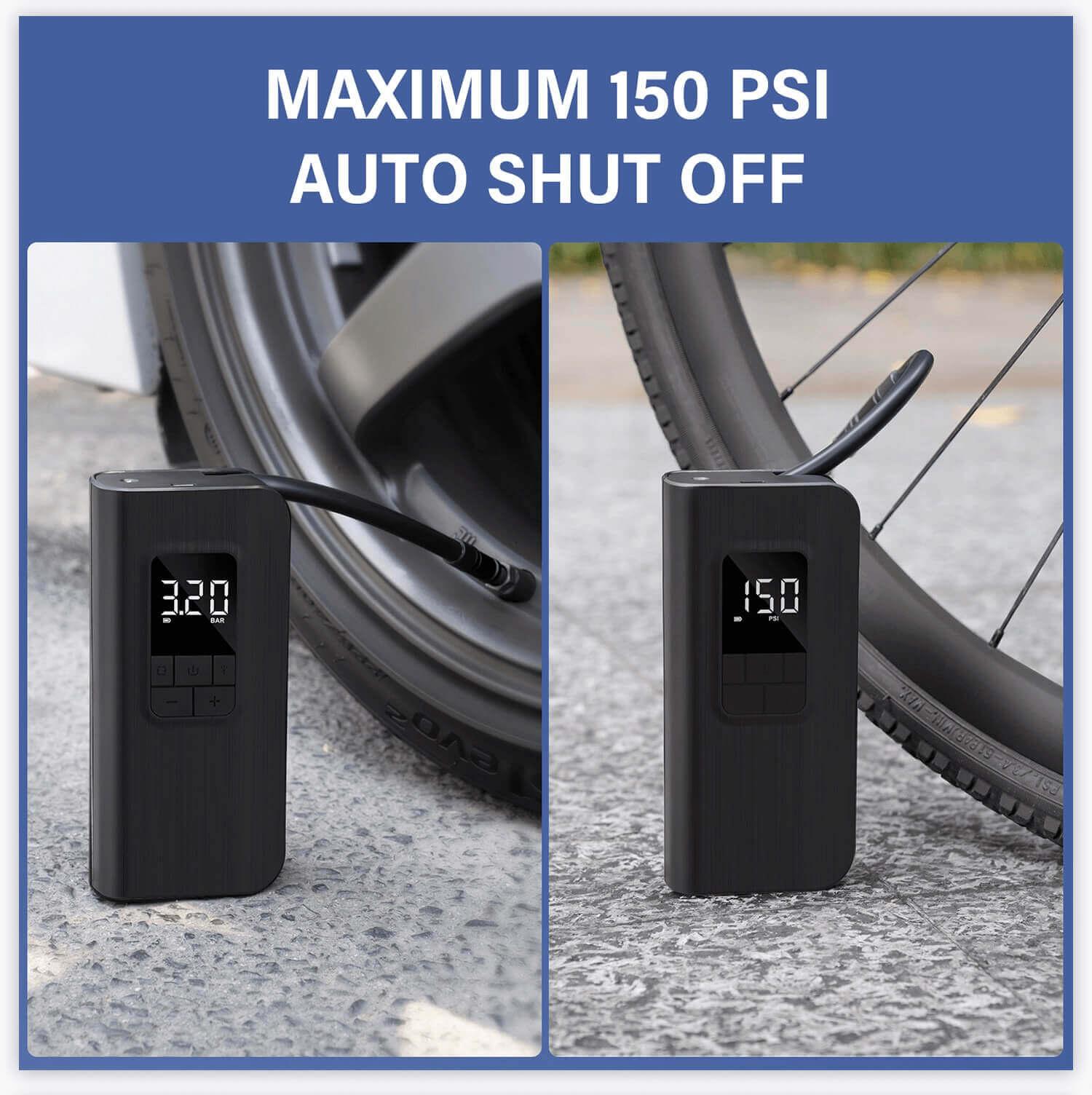 - Tự động tắt khi đạt đến áp suất thiết lập.