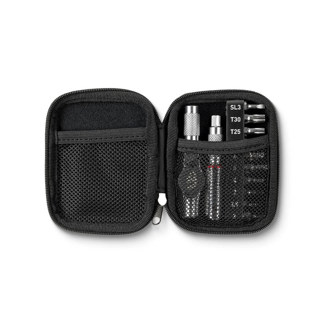 Giới thiệu Bộ Dụng Cụ Mở Bu Lông Ốc Vít Reflex, tiện dụng cho việc sửa chữa hàng ngày trong quá trình đạp xe. Bộ công cụ bao gồm một tay cầm nhỏ gọn có thể tháo rời, một ổ cắm mở rộng 25mm, một ổ cắm mở rộng 5Nm với chức năng vặn lực, và mười mũi tiêu chuẩn phổ biến nhất. Hộp đựng mềm đi kèm lý tưởng để mang theo trong túi áo jersey, hành lý du lịch hoặc mang theo bất cứ lúc nào, cho bất kỳ dịp nào.