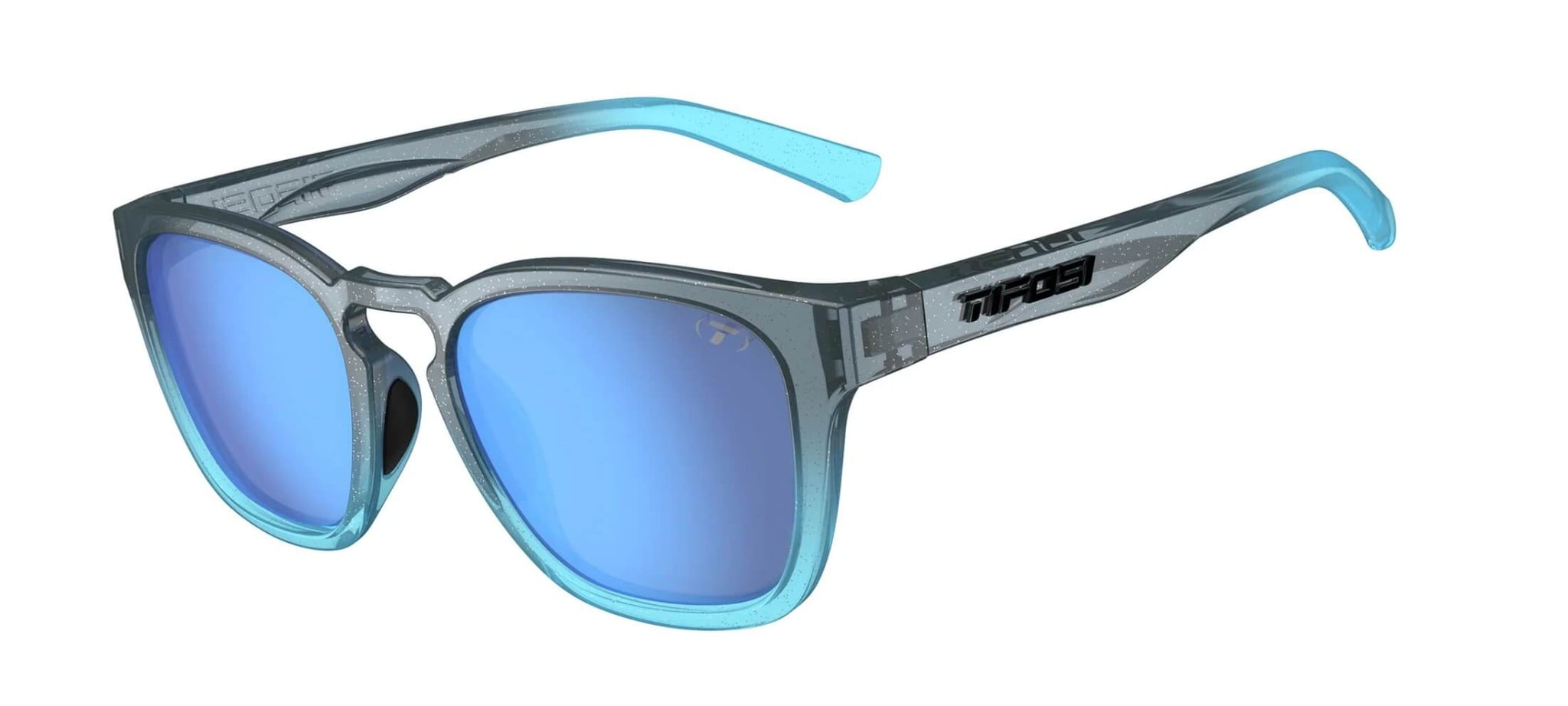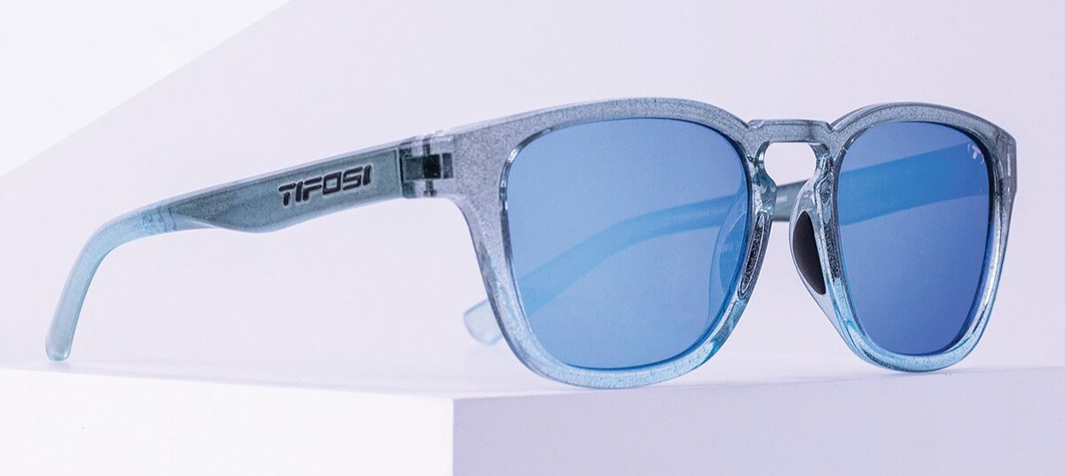CÔNG NGHỆ GỌNG KÍNH ➤ Đệm mũi cao su ưa nước tăng độ bám dính càng đổ mồ hôi, Công nghệ Tifosi Glide giúp gọng kính ôm vừa thoải mái và chống nảy, bản lề tích hợp không làm dứt tóc.