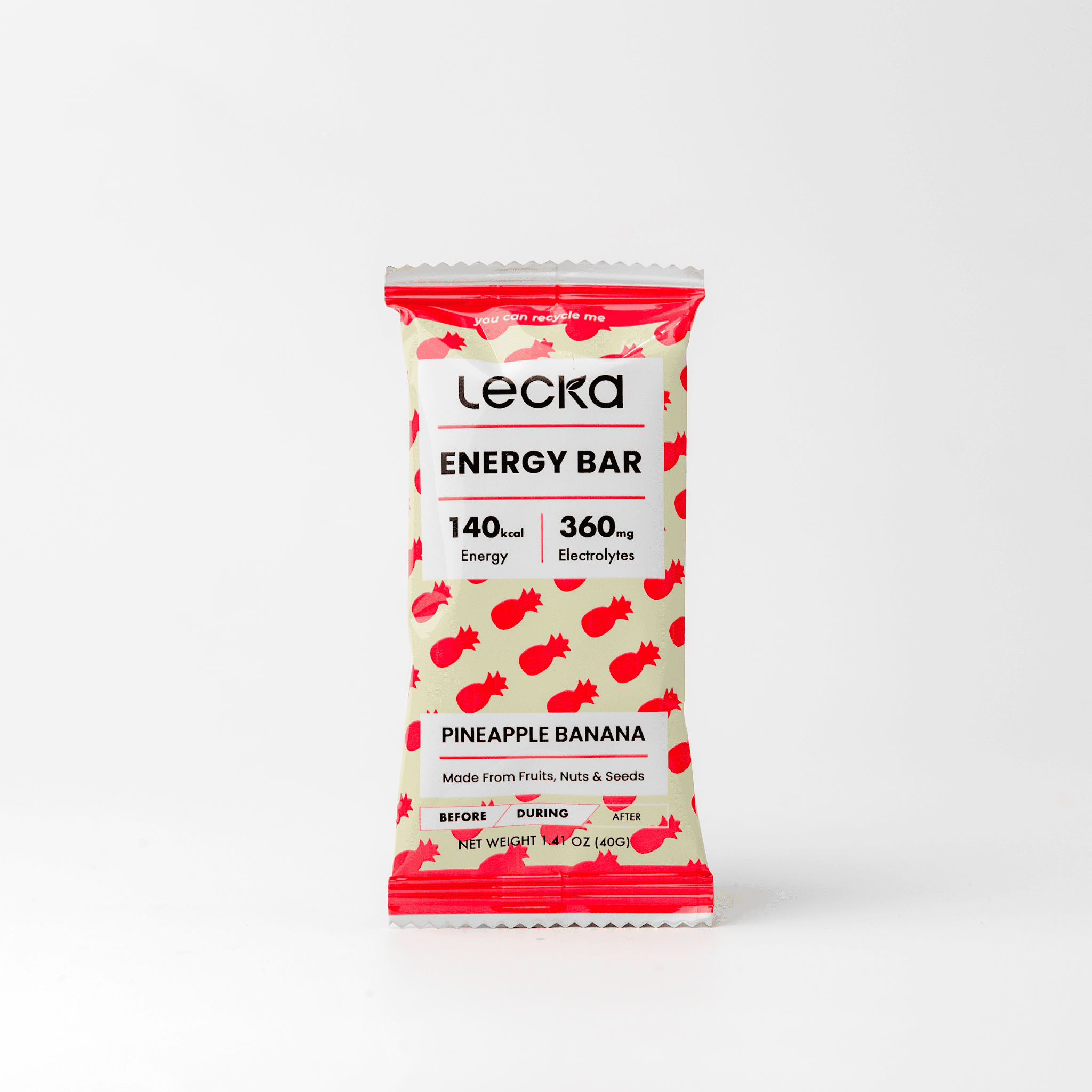 Lecka Energy Bar là thanh năng lượng tự nhiên, gồm 4 hương vị Xoài Dừa, Cacao Chuối, Chuối Quế và Chuối Dứa. Với thành phần 100% trái cây Việt Nam và hạt dinh dưỡng, sản phẩm mang lại năng lượng bền bỉ, dễ tiêu và lý tưởng cho mọi hoạt động thể thao hoặc bữa phụ lành mạnh.