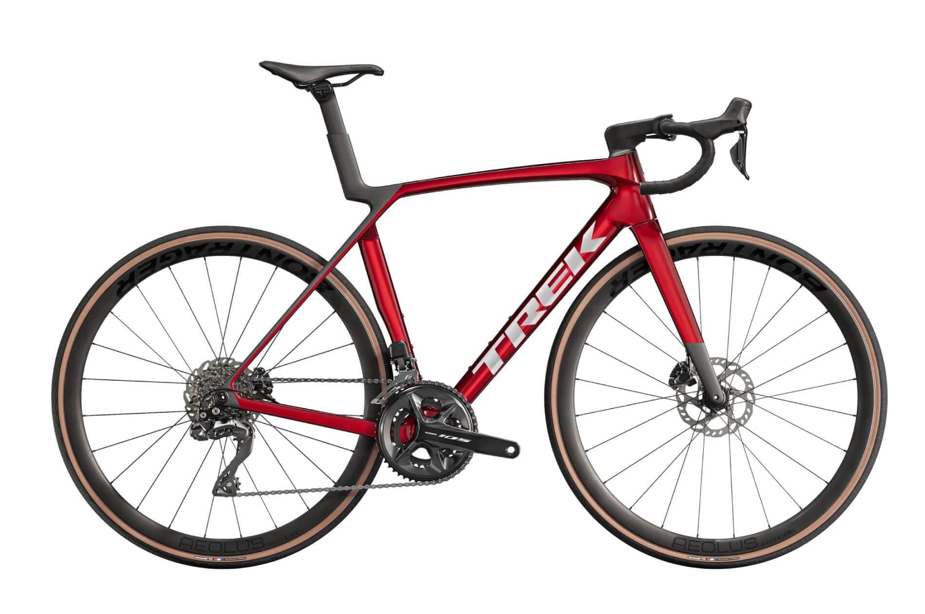 | Phuộc trước | Madone Gen 8 full carbon, tapered carbon steerer, internal brake routing, flat mount disc, 12x100mm chamfered thru axle |